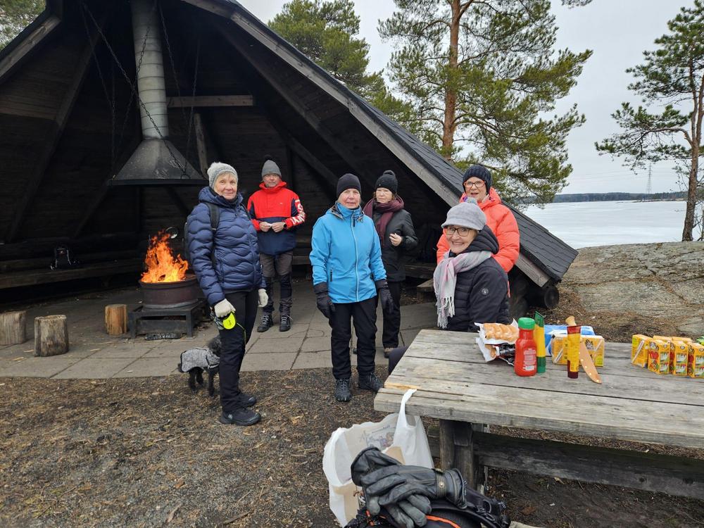 13.2.2024 Jusu Lehikoisen johdolla käveltiin Karhusaareen ja paistettiin makkarat