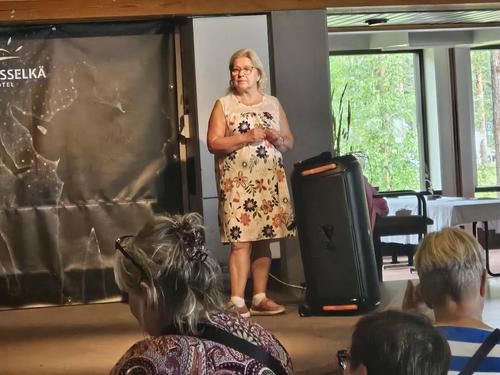 Pro Seniorit ry:n kesäpäivät vietettiin reilu 200 prolaisen (osa oli aveceja) voimin Keurusselällä 4.-6.8.2025. Tänä vuonna tilaisuus "myytiin loppuun" ja saimme yhden peruutusmökin, jonne me, Ritva ja Outi Lappeenrannasta ja Aira ja Kirsi Kouvolasta majoituimme. Meillä oli kaikenlaisia aktiviteettja kirveenheitosta korttitemppuihin. Kotiläksyksi saimme miettiä ehdotuksia ensi vuoden kesäpäiville, joka on myös ry:n 20 vuotisjuhla samalla.
