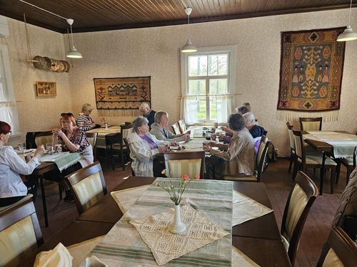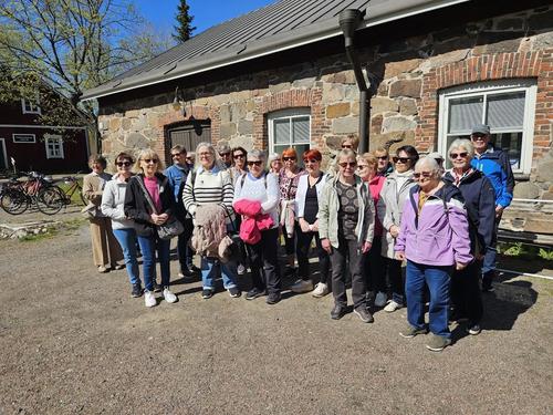 Perinteinen kirsikkakävely oli 16.5.2025. Käytiin ennen kävelyä tutustumassa Galleria Pihatossa Ella Kettusen näyttelyyn Pehmeitä kohtia. Kävelyn jälkeen juotiin kahvit Pehtoorintuvassa. Mukana oli 25 kerholaista.