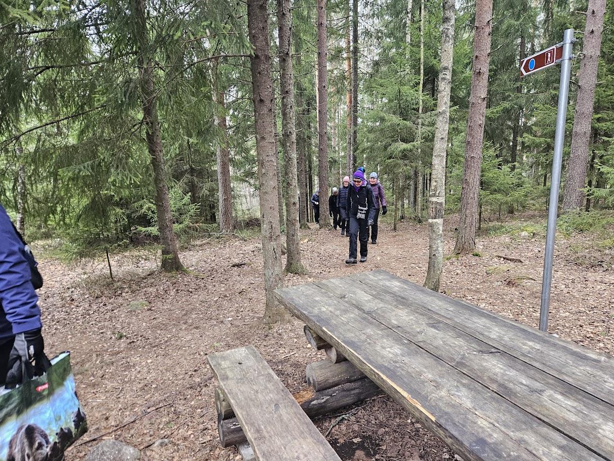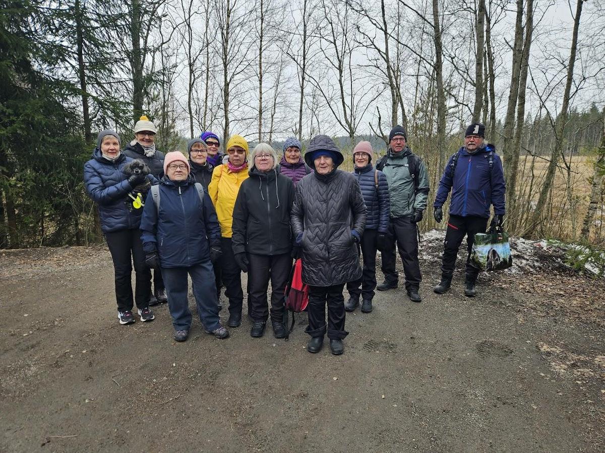 Hämmäauteensuon kävelyretkellä oli 13 prolaista ja 1 koira. Suurin osa porukasta kulki pitkospuita pitkin, mutta muutama "arkajalka" kuten myös kuvien ottaja katsoi viisaammaksi kulkea kunnollista polkua pitkin. Syötiin makkarat, juotiin mehut ja juteltiin vähän tulevista ja menneistä asioista sekä muuten vain höpöteltiin. Sää oli melko viileä, mutta ei kuitenkan satanut. Kiitos Jusulle retken järjestelyistä.